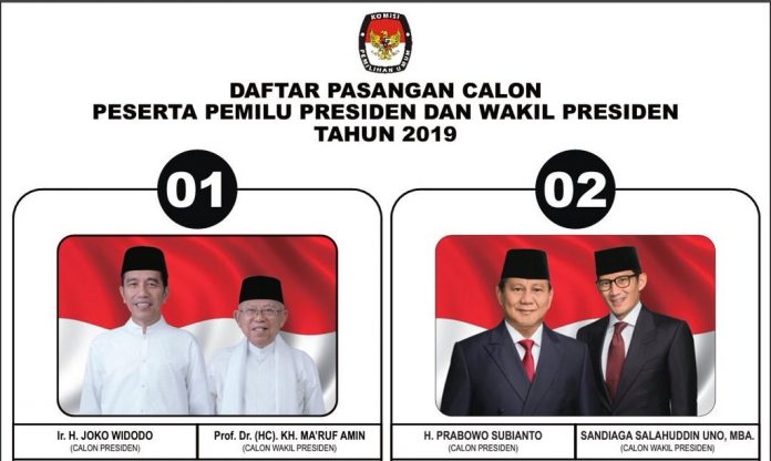 On Friday (21/09), the General Election Commission has officially set the voter number for the two pair of presidential and vice presidential candidates. Joko Widodo and his running mate Ma’ruf Amin got number one while the challenger Prabowo Subianto and Sandiaga Uno got number two. The series number got by the two pairs are different with the number they got in 2014 election.